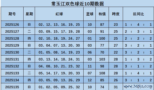 上期细密红球开出01,02,05,09,25,32,蓝球开出10,和值74,跨度31。区间比4:0:2。