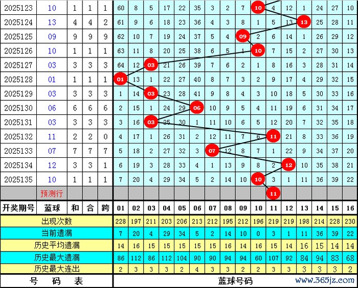 蓝球分析:奇数蓝球最近走势活跃,本期看好蓝球再开奇数,参考号码01、09、11、13。